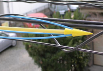従来のガイド工具に対してドロップケーブルをガイドした場合に、脱落しないように致しました。