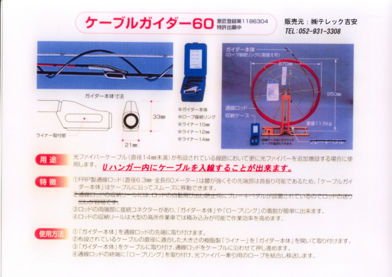 | 寸法 | ケーブルガイダーロッド 外径 φ6.3 x 60(m) |